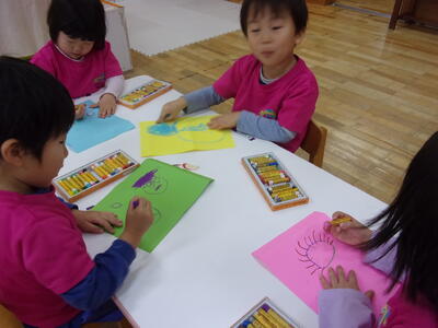 22日に温泉街へ町探検に出掛けます。お店でお菓子を買う体験もする予定なので、今日はおさいふ作りをしました。みんなで「おさいふ!!」と嬉しそうに元気よく言ってから、製作スタート!大好きなお絵描きをして作りました。町探検をとても楽しみにしている子ども達です。