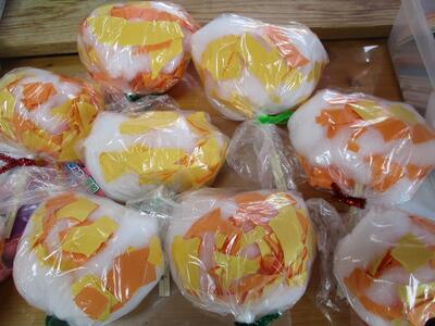 おなじみのカボチャに目や口を貼り付け、おまけでシールをペタペタはって可愛く仕上げてくれました♪