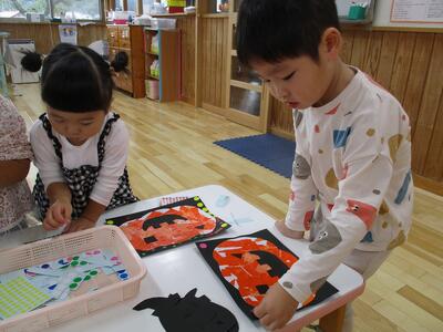 31日はハロウィンパーティの日なので、今日はお部屋を装飾するためのハロウィン製作を楽しみました!
