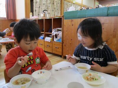 今日は散歩でたくさん歩いたので、給食もペロリと食べてくれた子ども達でした!