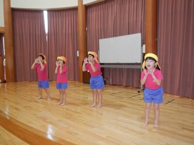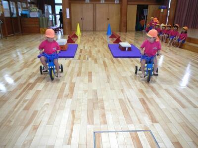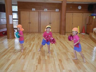 今日は、たんぽぽ組運動会をしました。子ども達が体操の先生やスタート係などをしてくれて、盛り上がりました。かけっこ、親子競技のようなサーキット、ダンス…と本当の運動会でした遊びを思いっきり楽しんでいました。ちゅうりっぷさんが挑戦していた三輪車にも挑戦し、「小さくて漕ぎにくいー。」なんて大笑いしながら楽しそうに挑戦していました。リレーは、園庭に出て障害物リレーに‼池のでこぼこ淵を渡り、くじら山へダッシュ‼木にタッチして次の人へバトンをつなぎました。みんなで思いっきり体を動かして、思いっきり笑って、思いっきり楽しんだ運動会ごっこでした。