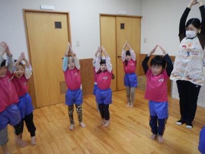 明日は生活発表会‼ということで、今日は発表会頑張るぞ会をしました。ゲームをして大盛り上がり‼くるりんぱゲーム、じゃんけんゲーム、紙を長く破るゲームをしました。勝っても負けても大きな声で叫び、一喜一憂しながら全身でゲームを楽しんでいました。明日の発表会、