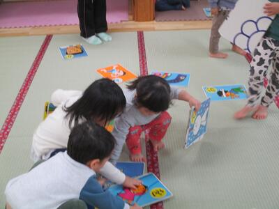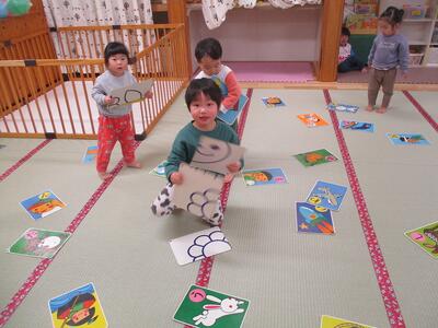 まずは【BIGカルタ】!絵の特徴を保育者が伝えると、ダダダーっとカルタをゲットするために全力疾走でした(笑)
