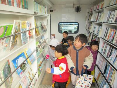 今日はしゃくなげ号来園の日だったので、絵本を借りる体験をしてきました!
