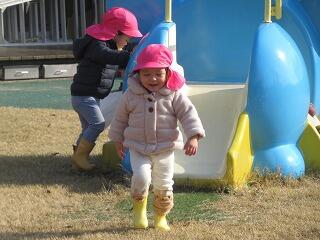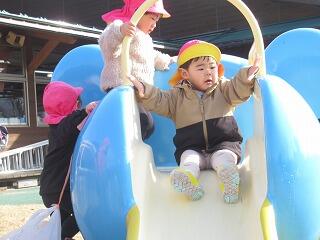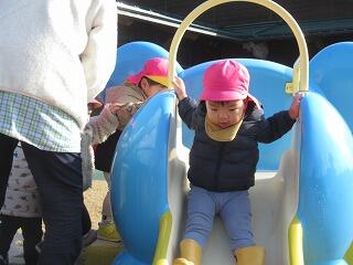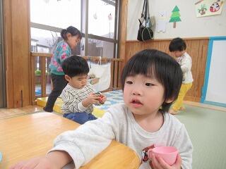 今日はいいお天気だったので、園庭で先日作ったたこをあげて楽しみました。しばらく園庭を走ってたこあげを楽しんだ後、滑り台をして楽しむ子ども達。保育者が子ども達のたこをもって挙げていると、「まって~」と追いかけてきました。再びたこあげを楽しむ子ども達でした。たくさん園庭を駆けてお腹が空いたのか、給食をおいしく食べてました。