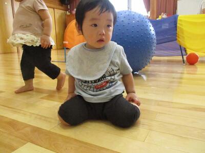 今日は、ホールで体を動かして遊びました。ボールを追いかけたり、以上児さんのお部屋を覗いてみたり、ステージの上に登ってみたり、とっても楽しそうな子ども達でした。保育室では、手作りの玩具で遊びました。ガチャガチャの容器を穴に入れ、コロコロ落ちていくのを楽しんだり、小さな穴に上手にポットン落としをしたりしていました。