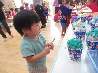 そのあとはちゅうりっぷさんとたんぽぽさんからお祭りに招待されたのでお邪魔してきました!かき氷を買ったり金魚すくいをしたり楽しいお祭りを満喫したもも組さんでした!
