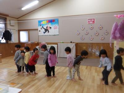 今日から節分の枡を作り始めました。まずは、長方形の折り紙を牛乳パックに貼りました。牛乳パックが見えないようにきっちりと揃えて貼るさくらさん‼丁寧に丁寧に取り組む姿が見られましたよ。目や髪の毛、鬼のパンツなど好きな色や形で作ったので、全てオリジナルです♪もうすぐ完成です。もう1つ、すごろくの駒も作りました。ヤクルトカップに毛糸やリボン、画用紙を使って自由に飾り付けをし、最後に自分の顔を付けて完成。皆の顔の可愛いマスの出来上がりです。マスが出来上がった後は、皆ですごろくで遊びました。