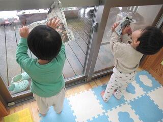 自分のロッカーや床をゴシゴシしてもらうだけにしようかなー...って思ってましたが、保育者の姿を真似して窓や壁までピカピカに磨いてくれました♪これで気持ちよく新年を迎えられますね🐎