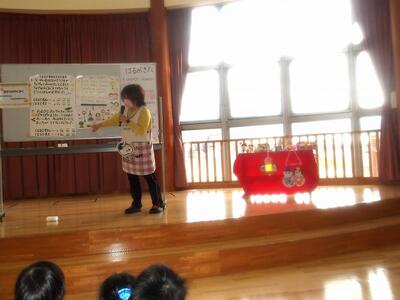 3月が始まりました。ホールに全園児が集まり、ひなまつり集会をしました。3月のやくそくは「おうちのひととかんがえたやくそく」となっています。一緒に考えて取り組んでみてくださいね。ひなまつりの由来を聞いたあと、各クラスのおひなさまの紹介があり、工夫したところやがんばったところをお話してもらいました。廊下に全園児のお雛様を展示しています。送迎の際にゆっくりご覧ください。