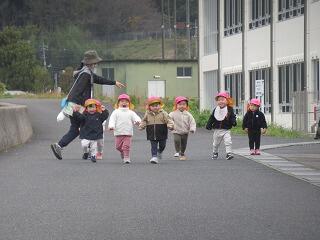 もも組さんだけで歩いて行くのは初めてだったので、信号つき横断歩道の渡り方のお勉強をしたり、しっかり手をつなぐことを約束したりしながら、頑張って長距離を歩いてくれました。