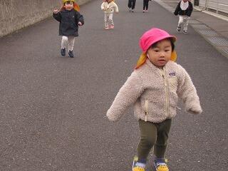 今日はいいお天気だったので、小学校までお散歩に出かけました。運動場では、小学生のお兄さん、お姉さんたちが遊んでいて、小学校の前を通りかかると、声を掛けてくれて、少し触れ合いを楽しみました。帰りは川側をかけっこして楽しみました。
