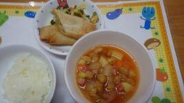今日はお部屋でブロック遊びをしました。ケーキを作ったり、アイスクリームを作ったり、ピザを作ったり・・・ブロックで作りながらも頭の中は食べ物でいっぱい♡給食の時間になると、«待ってました!»と表情を輝かせ、「今日の給食はなあに?」と尋ねる子ども達。「ミートボールだよ~」と伝えると、一番にミートボールからおいしく頂くみかん組さんでした。